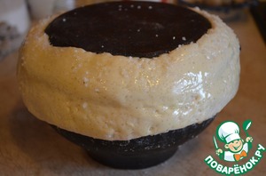 В это время готовим соленое тесто. Его не едят, и используют только как герметик. Если же Вы хотите, можно попробовать сделать это блюдо с обычным домашним дрожжевым тестом на хлеб.