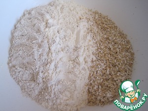 Смешиваем два вида муки, отруби и соль в отдельной посуде.