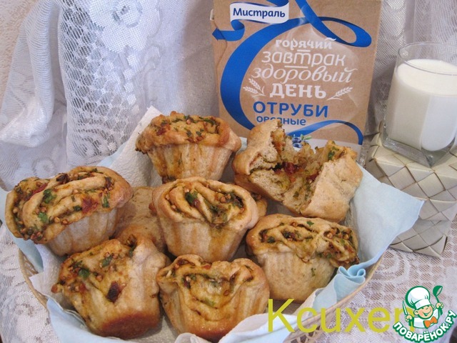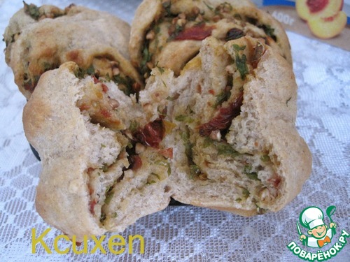 Рецепт «Отрубной пряный хлеб с вялеными томатами и зеленью»: