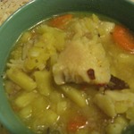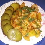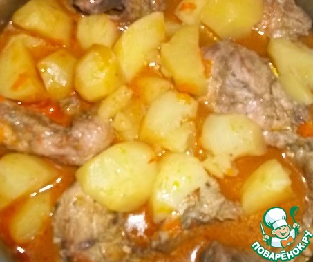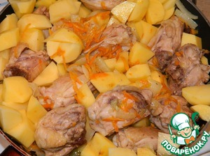 ... за это время почистим, помоем и порежем крупно картофель. Добавим к курице.