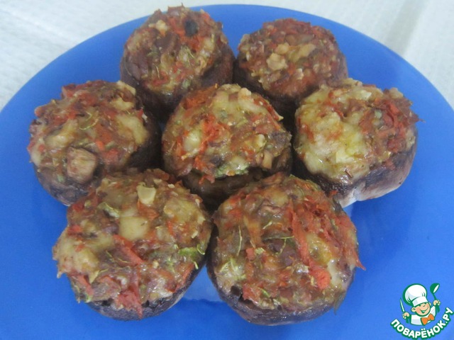 Шампиньоны, фаршированные кабачком с тмином и орехами