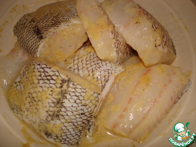 Рыбу порезать крупными кусками, посолить, добавить горчицу, перемешать.