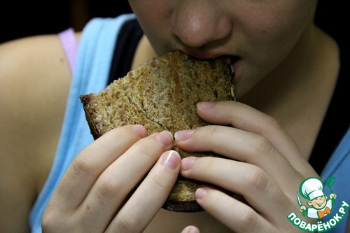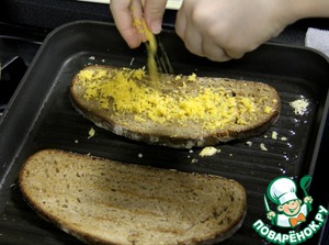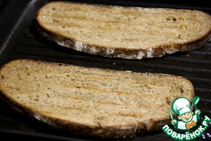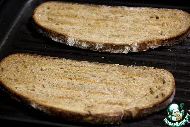 • Куски хлеба слегка обжариваем с обоих сторон. Должна получится легкая корочка.