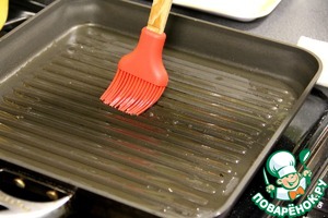 • Сковороду-гриль смазываем растительным маслом и нагреваем.