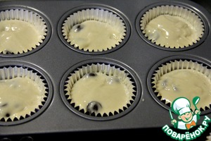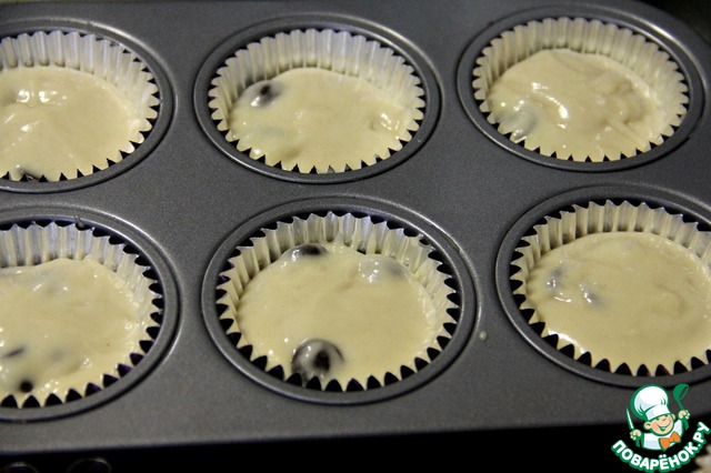 В формочки для маффинов выкладываем тесто, заполняя их на 2/3.