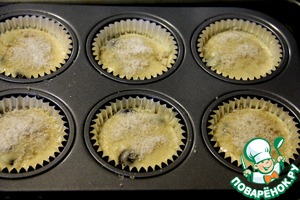 Посыпаем маффины и ставим в предварительно нагретую до 225С (400 ) духовку на 20-25 минут.