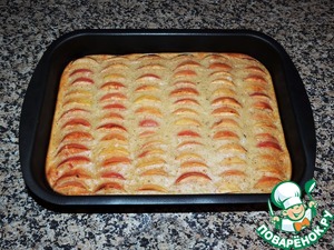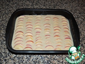 Тесто распределить в смазанной маслом форме (можно подложить пергамент). Размер моей формы 30х22 см.