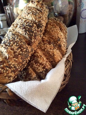 Выпекаем в горячей духовке 20-25 минут. Багеты готовы! Семена не дали тесту подсохнуть при высокой температуре и сыграли роль своеобразной защиты! Перекладываем багеты с противня на решётку, накрываем сухим полотенцем и даём слегка остыть.