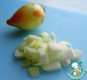 Очистить и нарезать лук, обжарить в сковороде или сотейнике до прозрачности. Добавить мясо, немного обжарить.