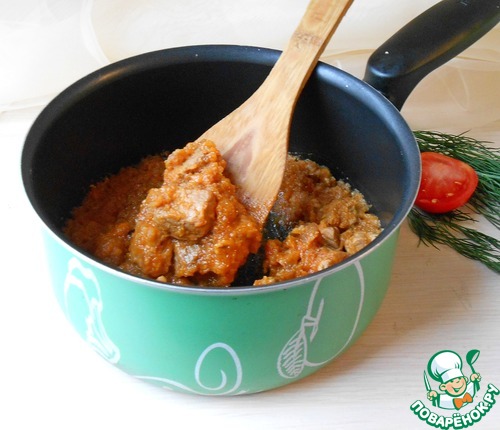 Тушить на среднем огне до мягкости мяса. Если соус будет слишком густой – в процессе тушения добавить воды.