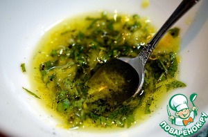Для заправки смешать цедру, нарезанные листочки мяты, добавить семена ванили (стручок разрезать вдоль и выскоблить семена)