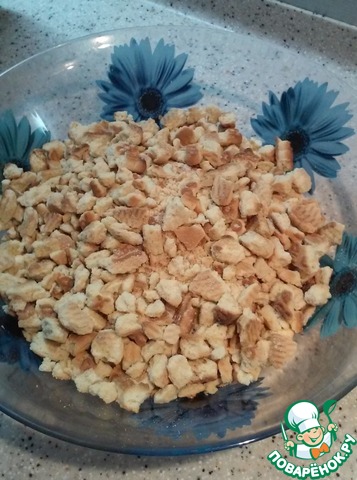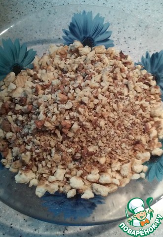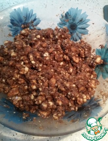 Снять с огня и соединить с печеньем и орехами. Все перемешать.