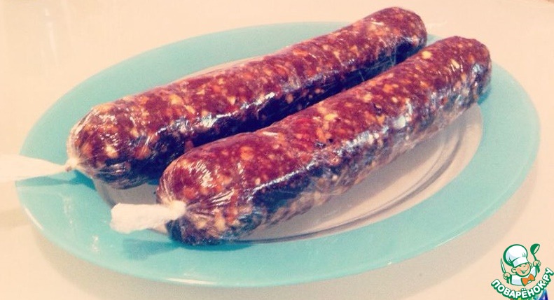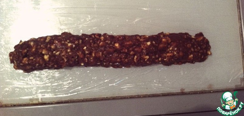 Выложить получившуюся массу на пищевую пленку, сформировать колбаску.