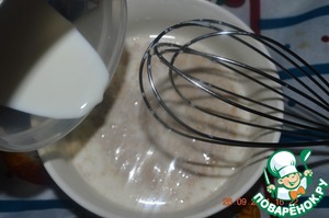 Залить подогретым молоком и перемешать до однородного состояния