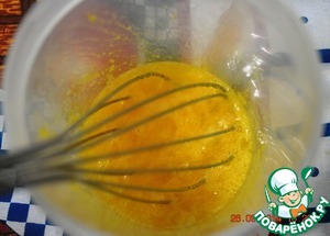 В отдельной посуде взбить яйца с сахаром и солью