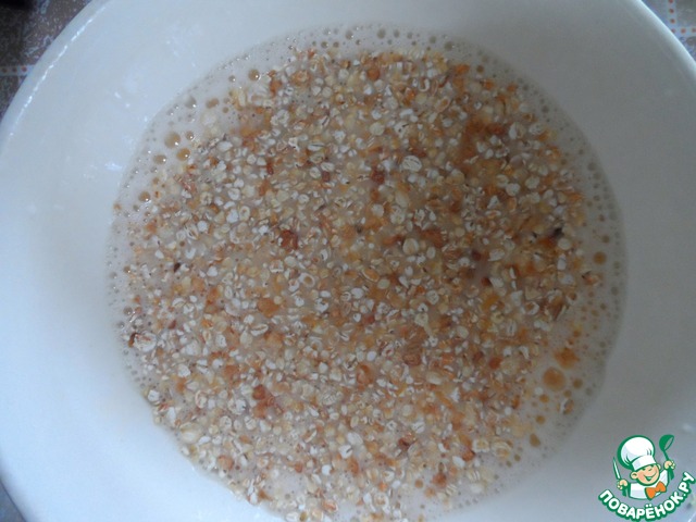 Готовим омлет. Взбиваем яйца с солью, добавляем молоко. Добавляем смесь злаков ТМ "Мистраль". Перемешиваем.