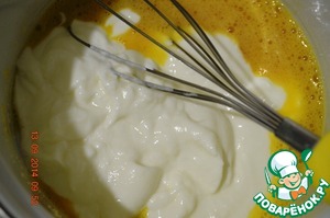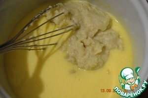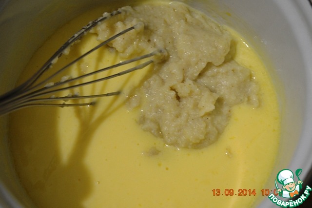 Пшенную кашу выложить в яичную смесь, хорошенько вымешать.