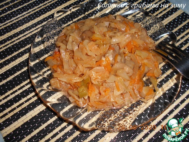 Девочки, мальчики, презентую вам самую вкусную (для меня) солянку в мире))). Этот чудесный рецепт мне передала мама мужа, за что я и все мои близкие ей безумно благодарны. Солянка-салат получается очень вкусной. Редко доживает у нас до зимы. Но это нас не останавливает и зимой мы делаем новые порции этого чудо-салата, доставая замороженные грибы из морозилки.
