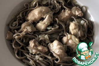 Очень вкусное, сливочное блюдо. Нежное мясо, пропитанное ароматом грибов и овощей, с легким привкусом чесночка.