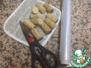 Для изготовления стаканчиков нам понадобится : 10 пробок от вина (или больше, в зависимости от количества стаканчиков, которое Вы хотите приготовить) и пищевая пленка. Убедительная просьба-не выпивать десять бутылок вина одним махом с целью приобретения пробок!!!
