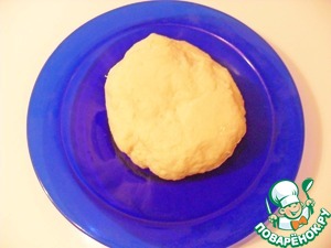 Замесим тесто из муки, воды, соли и яйца. Вода должна быть очень холодной. Тесто ставим "отдыхать" на время приготовления начинки.