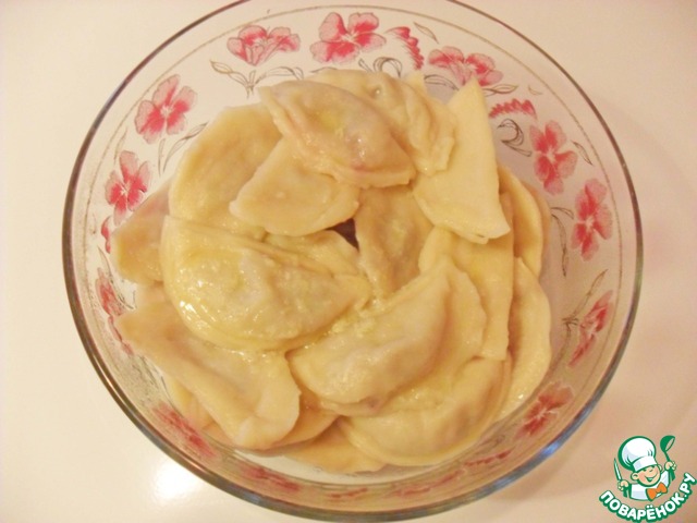 Готовые вареники достаем шумовкой, складываем в миску/салатник, поливаем маслом и встряхиваем, чтобы смазать все.