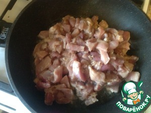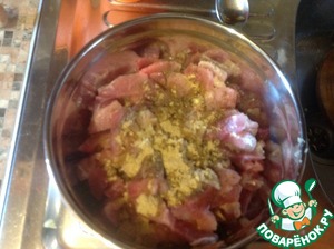 В сковороде нагреть масло и выложить замаринованное мясо тушить 10-15 минут под крышкой. Добавить соль ( по вкусу).