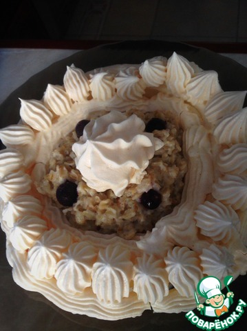 Белковую массу переложить в кондитерский мешок и отсадить на противень с бумагой для выпечки окружности как на фото. У меня получилось 3 основы + много мелких безешек. -