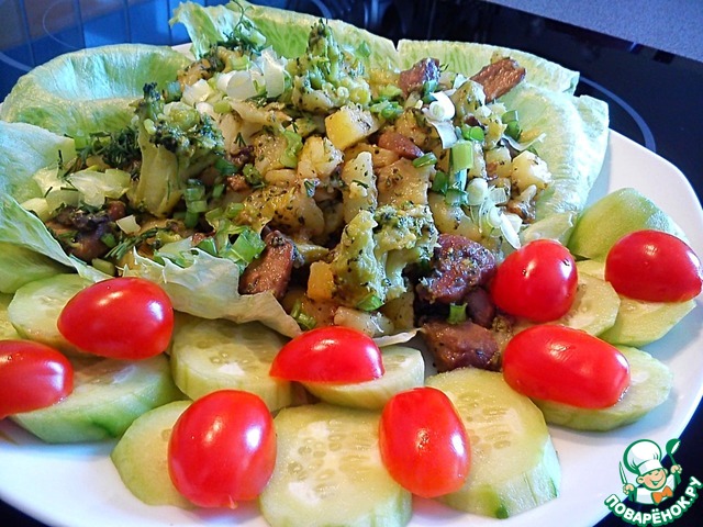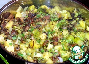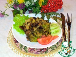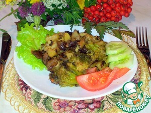 Рецепт «Жареные грибы с картофелем и брокколи»: