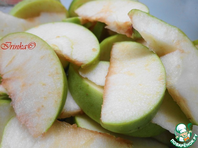 Нарезаем ломтиками четыре яблочка, прямо вместе с кожурой.