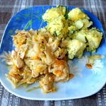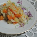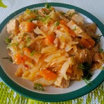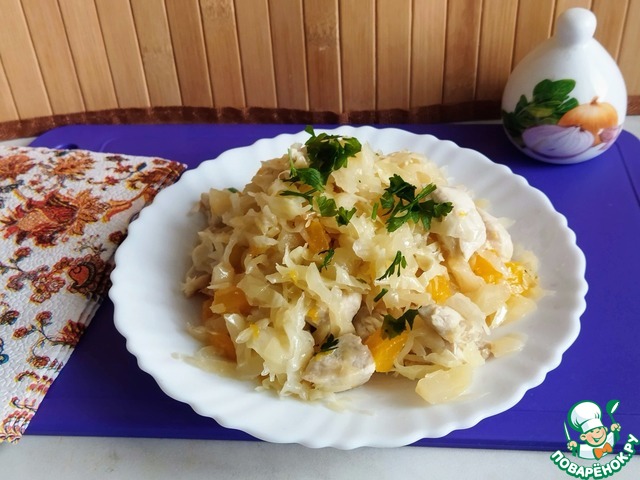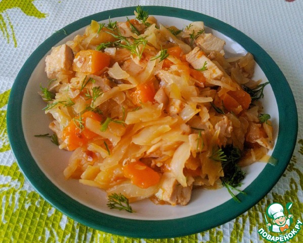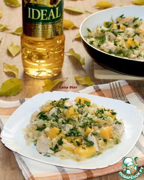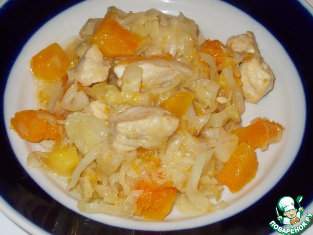 Рецепт «Тушеная капуста с тыквой, яблоком и курицей»: