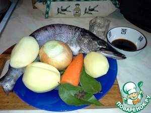 Для начала нам понадобится щука, лук репчатый, морковь, лавровый лист и перец душистый горошком. Количество ингредиентов рассчитано на 3 - литровую кастрюлю.
