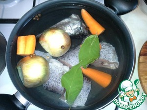 Через 10-15 минут, вытащить из кастрюли щуку, лук, морковь и лавровый лист.