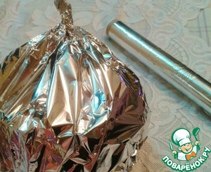 Заворачиваем в фольгу. Кладем в емкость с небольшим количеством воды. Ставим в духовку на 30 мин при t - 180°. P.S. : если вы используете маленькую тыкву и срезали у нее крышечку, то закройте ею наполненный фаршем овощ и поставьте при выпечке поддон с водой. P.S. Ботаники считают тыкву пасленовой ягодой, но мы знаем как овощ.