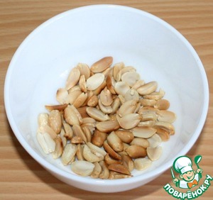 Фруктово-овощной салат подавать теплым. При подаче салат посыпать обжаренным арахисом.
