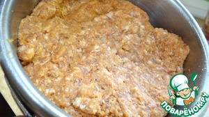 Мясо и шпик пропустить через мясорубку с решеткой 7-8мм;