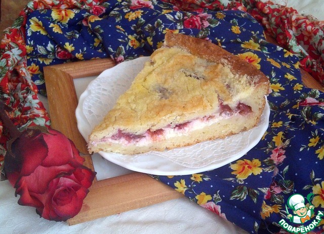 Рецепт «Пирог творожный со сливами и хрустящей сахарной корочкой»: