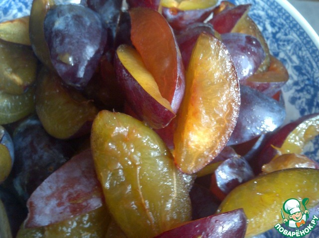 Сливы помыть, удалить косточки и порезать на 4 части.