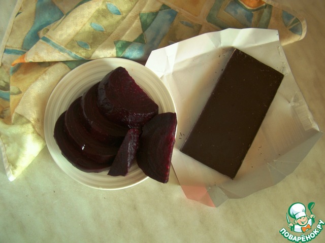 Теперь возьмем наши главные составляющие пирога: отваренную свеклу и шоколад.