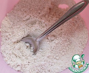Сделать тесто: Смешать в отдельной миске ржаную и овсяную муку, разрыхлитель. Если есть возможность, не заменяйте ржаную муку пшеничной! Ржаная мука придает очень интересную нотку тесту!!!