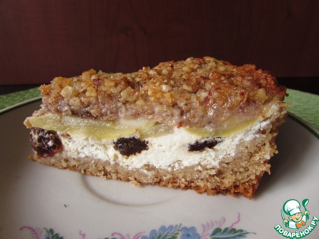 Этот пирог, несмотря на внешнюю простоту, по вкусу является настоящим кулинарным шедевром! Очень интересное овсяно-ржаное тесто великолепно сочетается с нежным творожным слоем и кисловатой сладостью яблок, а дополняет вкус хрустящая смесь из орехов и овсяных хлопьев. Просто божественно вкусно, при этом несложно в приготовлении (не смотрите на длинное описание, готовится быстрее, чем пишется)!