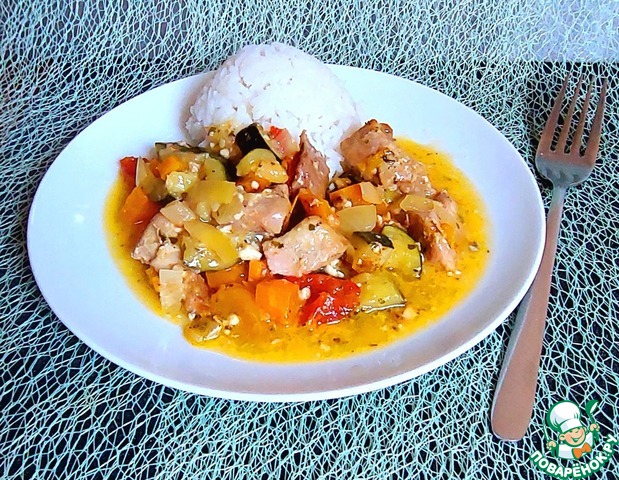 Это такое лентяйское рагу с мясом, понравилось, что можно добавить количество на свой вкус и ничего жарить не надо! Я только мясо замариновала в соевом соусе, остальное по рецепту! Благодарю за отличный рецепт!