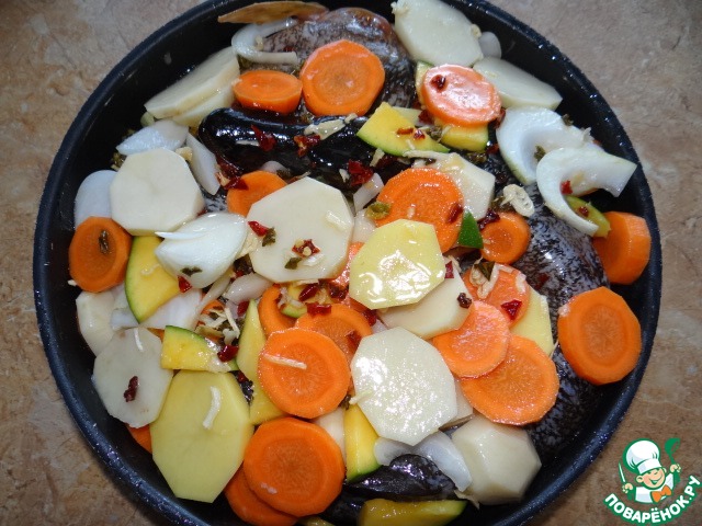 Рецепт «Осенняя щука, запеченная с овощами и манго»: