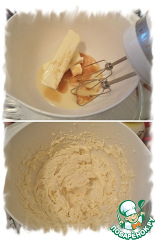 Сгущёнку, масло комнатной температуры и экстракт ванили взбить до однородности.