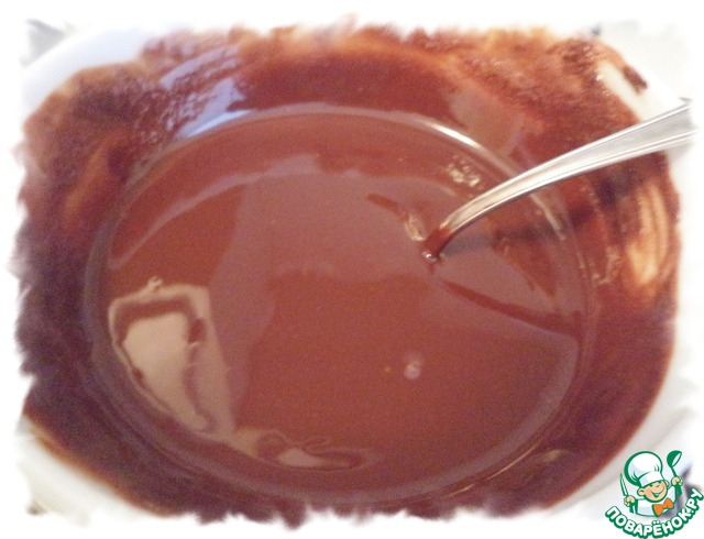 Приготовить глазурь. Шоколад растопить на водяной бане, добавить масло и хорошо размешать, чтобы получилась однородная глянцевая масса.