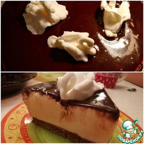 Выложить суфле на корж, накрыть сверху вторым коржом и хорошо прижать. Убрать в холодильник на час. Я форму (20 см) удлинила в высоту, можно взять форму побольше диаметром, и тогда ничего удлинять не надо, соответственно торт получится ниже.