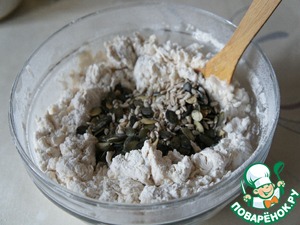 Замесить тесто. Надо постараться сделать так, чтобы семечки распределились равномерно в толще теста.