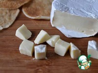 Сыр с белой плесенью режем на мелкие квадратики.
