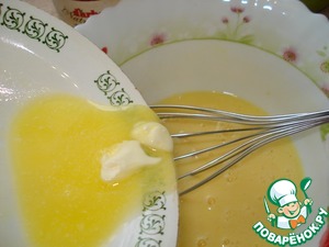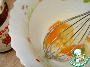 В миске взбиваем кефир с яйцами и щепоткой соли.