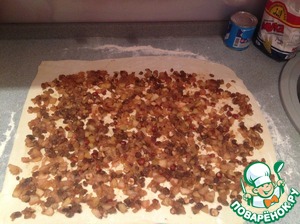Тесто раскатать, выложить массу равномерно, не доводя до верхнего края сантиметров 5-8.